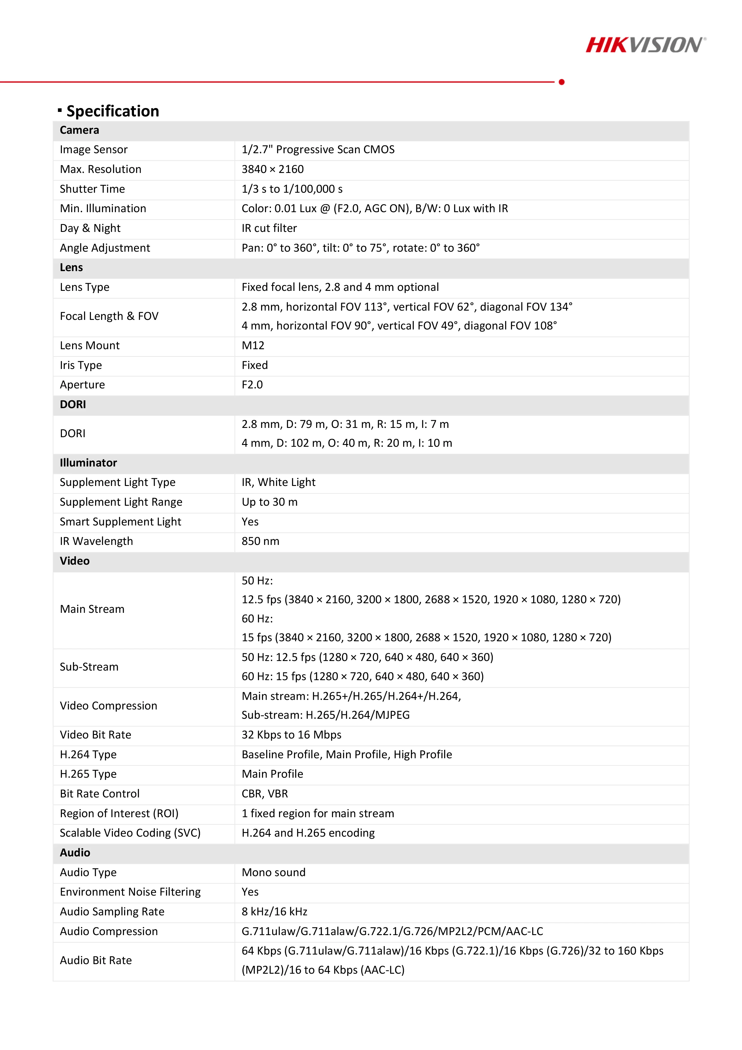 Hikvision 8MP IP Camera, Built-in Mic Dual-Light 4K Smart Camera