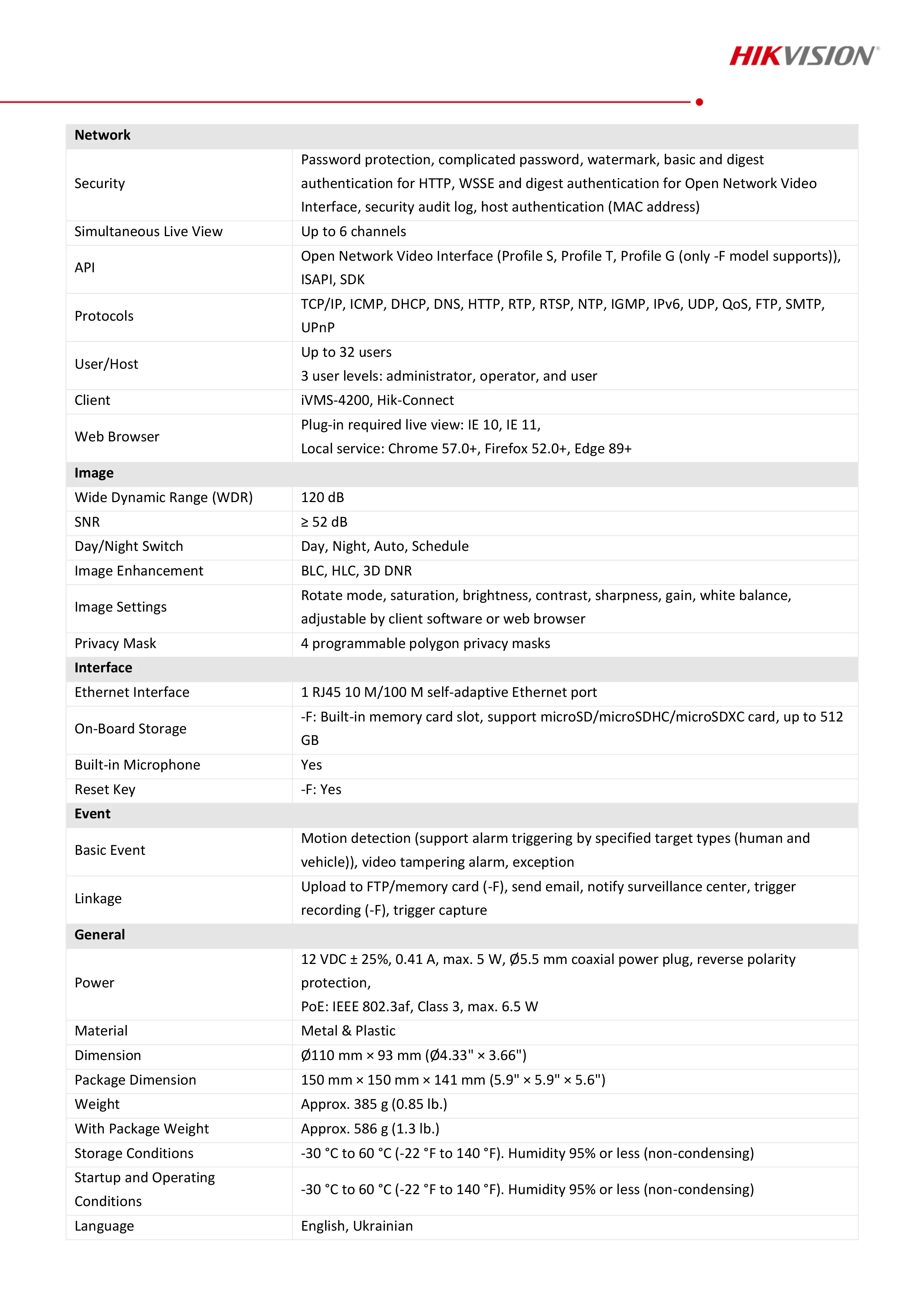 System Compatibility: ONVIF, PSIA, CGI, ISAP